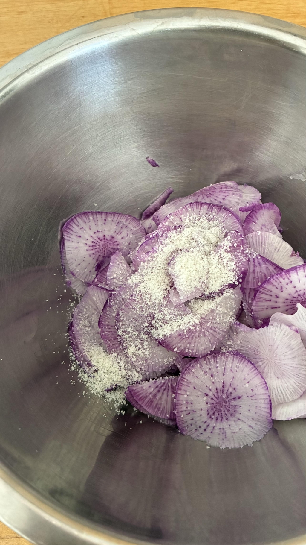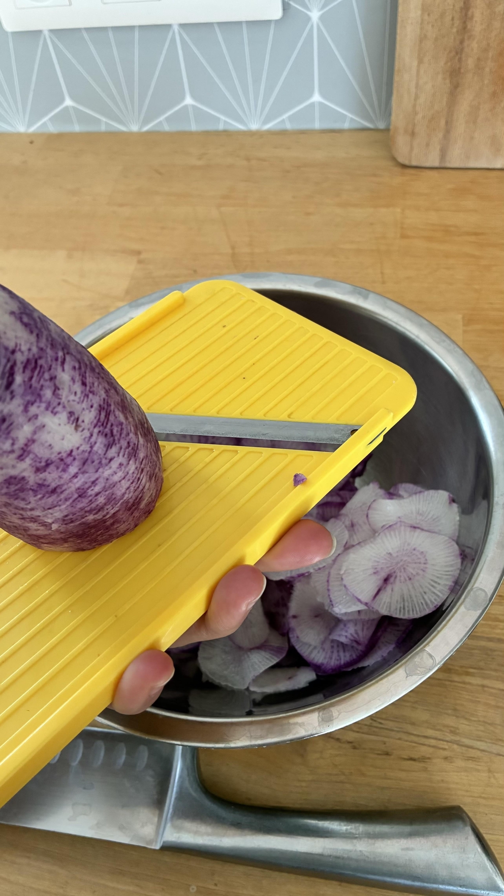 J'aime aussi la couleur du radis violet, c'est pourquoi je l'utilise dans les pickles et les salades.